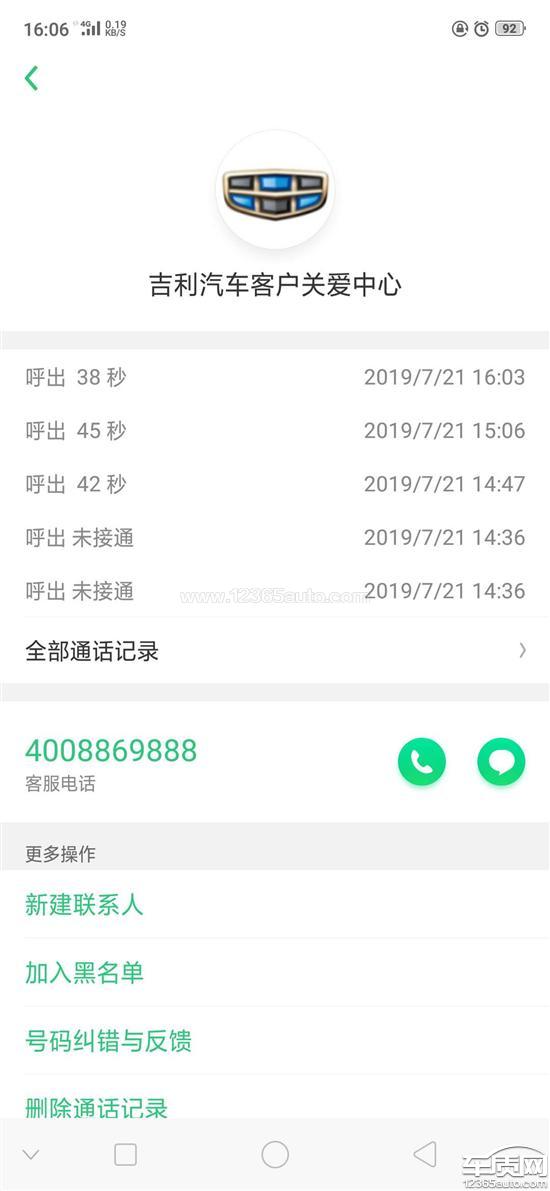 吉利汽车厂家回复:尊敬的车质网:接到贵网转发的用户信息后,我司高度重视,立即安排服务网点工作人员与用户取得联系。针对用户所反馈的情况,正在与用户进行沟通、协商,后续将继续关注;