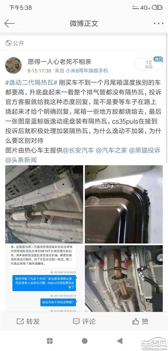 长安逸动排气管减配隔热瓦存在安全隐患2019-08-16车型:2019款 1.6L GDI 自动 先锋型 高能版 国VI