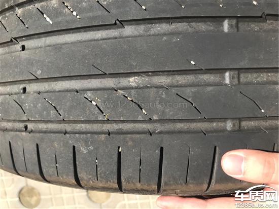购车1年,行驶21500公里左右,高速行驶时听到爆响,胎压检测出现报警,停车检查发现胎面爆破漏气,当即同4S店及DS客服报备,更换备胎行驶至安全地带。后检查,四条轮胎均出现明显花纹沟纵沟沟底裂纹。其中有一条轮胎还是索赔之后更换的轮胎。原轮胎索赔原因为行驶2600后后胎侧及胎肩位置胶料裂口。