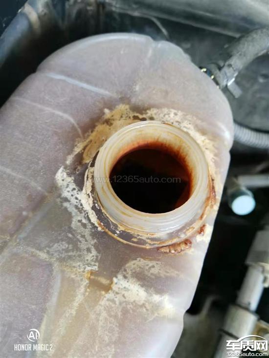 购买2年的广汽传祺GS8,在这两年过程中多次发现发动机冷却系统内产生水垢,多次致电传祺厂家4008136666,跟厂家投诉无果,或厂家与汕尾市传祺4S店之间相互推诿责任,不给解决办法。现冷却液水垢已经溢出副水箱壶,高速驾驶过程中发动机水温报警。