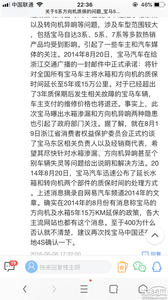 行驶94500公里,车载电脑显示方向盘重,经过深圳宝源行福田汽车站4S店检查确认方向机坏,当时工作人员称2015年3月份或之前宝马525豪华设计套装F18款符合方向机召回范围之内,但是后续与厂家确认,此车于2019年4月29日生产超出召回范围,不在保修范围内,故拒绝保修!而离实际问题产生车型仅仅29天,那么此前出现的问题零配件可能在生产流动环节流转到下个月周期(即确认召回的下个月)且宝马在相关网站发布F18型按照5年15万公里保修,并针对此问题承认出现了批量问题,鉴于以上情况望消协领导予以处理,谢谢!