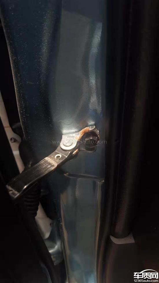 新车2W公里出现了主驾驶室门铰链限位器底座生锈,底座原来就是镀锌板,不易轻易生锈或腐蚀的。根据多次过去4S店维权质保,4S店拒绝更换配件,只允许将生锈配件拆下重新喷漆处理。