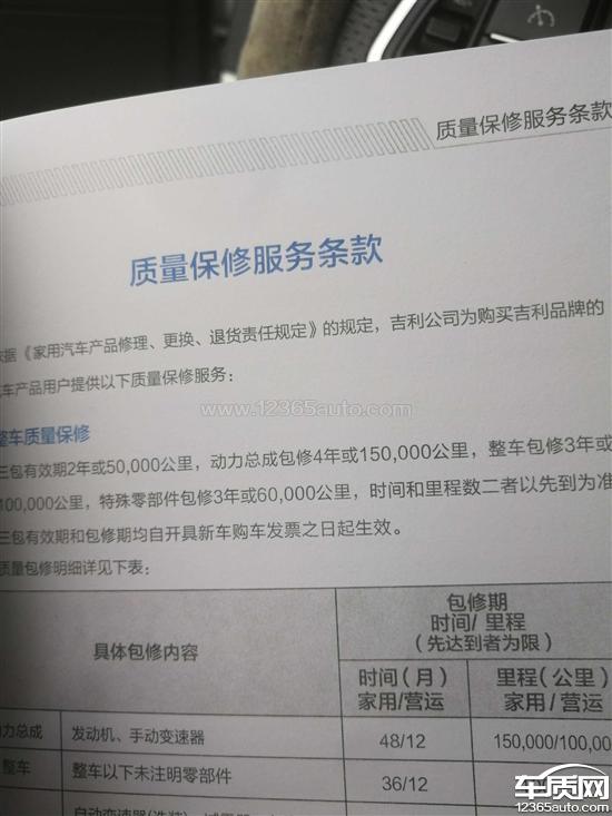 吉利汽车厂家回复:尊敬的车质网:接到贵网转发的用户信息后,我司高度重视,立即安排服务网点工作人员与用户取得联系,针对用户所反馈的车辆情况,正进行沟通、解释中,后续继续关注处理。特此回复。