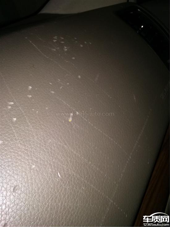 车辆自购买以来为家用,比较爱惜车辆,保养维护勤遍,有车库停车。2018年5月发现中控台容易留下印记,后来慢慢发现指甲轻碰一个印,稍微用点力就一个坑,表面塑料发粘。2019年7月发现有多处开裂。上网查了一下有很多同时期的日产天籁出现这种情况,这是厂家用的材料问题。