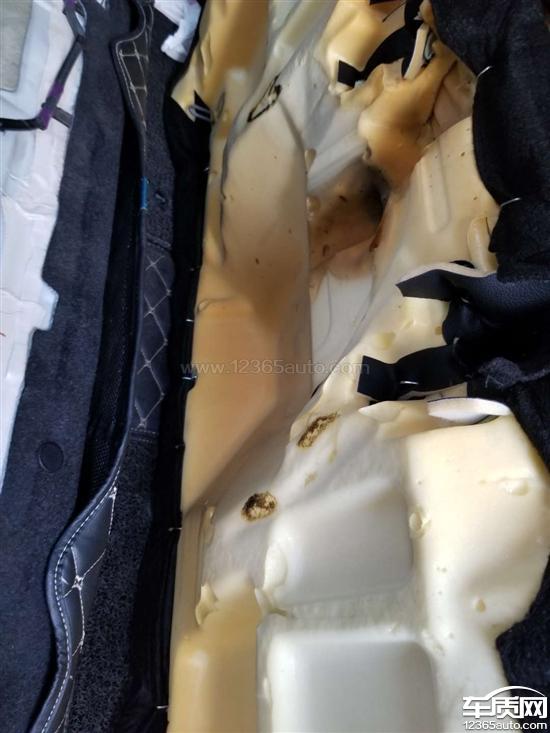 后座底部海绵被烤焦了,不知道是不是排气管发热导致的。