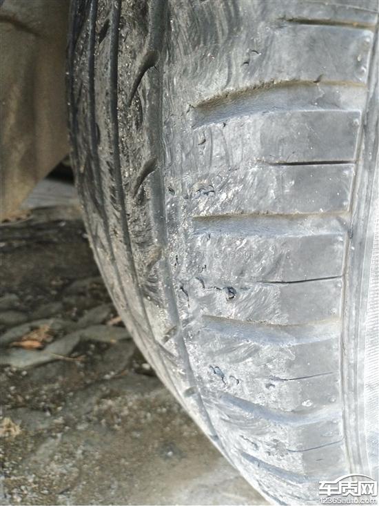 高速超过110公里/小时,前轮有噔噔的响声,轮胎表面起空,一块一块的掉橡胶。