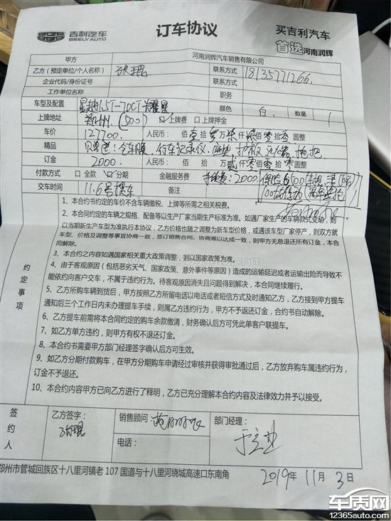 吉利汽车厂家回复:您的信息我们已经收到,将尽快协调相关4S店与您核实处理,厂家也将持续关注后续处理情况。感谢您的支持与谅解,如有疑问欢迎您致电吉利汽车客户服务热线:400-886-9888。
