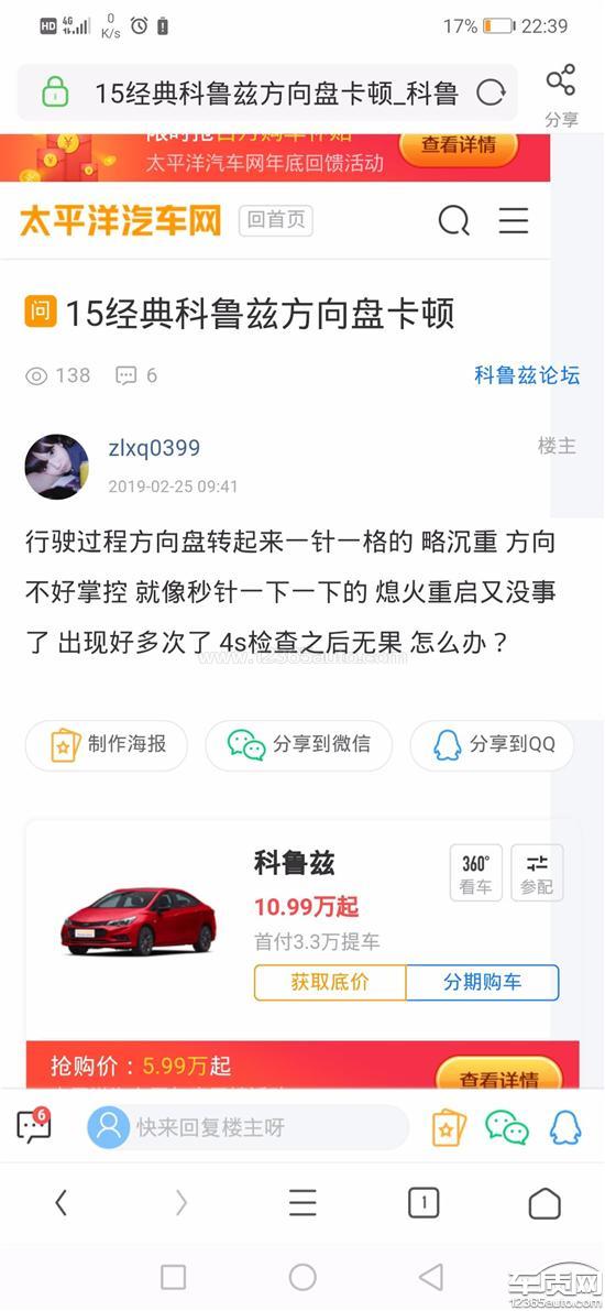 转向机有故障,去店里检查还被告知正常,这不是个例,网上好多用户反映这个问题(如图),都拖过质保期了,希望雪佛兰厂家重视并更换转向机总成彻底解决问题。