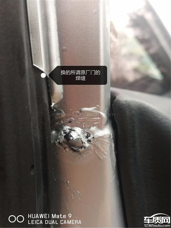 车辆发生事故剐蹭,左前驾驶门损坏,出险后在青岛丰田更换左侧车门壳,铰链以及限位器,一周后验车,发现更换新的原厂车门侧面焊点太大,完全就是手工焊接的,和4S店维修主管反复确认是否是丰田工厂原装零件,他们一口咬定是原厂配件,但是原厂配件都是焊接生产线的成品,和右侧原车门焊点不可能有如此大的差别,如果是原厂配件说明丰田工厂发过来的车门有质量问题!