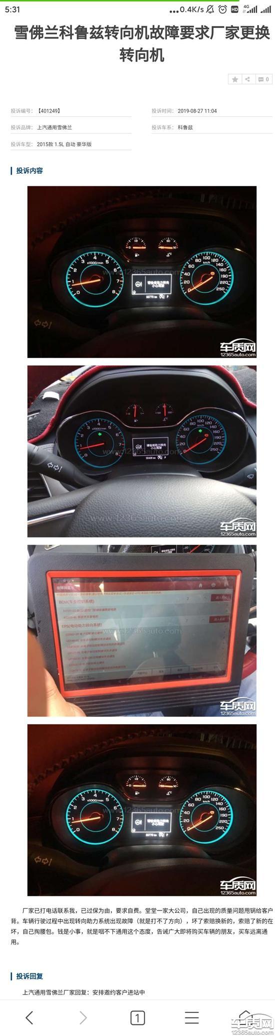 投诉编号:【437229】 投诉时间:2019-12-26 06:10 投诉品牌:上汽通用雪佛兰 投诉车系:科鲁兹 投诉车型:2015款 1.5L 自动 豪华版