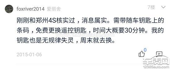 18年的冬季开始,遥控偶尔没反应,以为是电池没电,换电池后任然偶尔不灵。今年秋季开始,按键完全失灵,但启动车辆再熄火后10分钟内,遥控有效。半小时后再按就失灵了。到了现在,不论怎么操作都没反应。在汽车之家论坛看到同款车在15年大面积爆发过此问题。都予以免费更换钥匙解决。今天去4S店检查后,4S店换新电池后仍然没有反应。4S店要求自费更换车钥匙。我认为这是批次性质量问题,应该予以免费维修。第一次投诉,4S店回复已过保修期,不能保修。最多给我工时费8折优惠。将近1000块的新钥匙费用,只能给我优惠80块钱左右。好敷衍!还没见过哪个车的钥匙用四五年就烂掉了,直接换新钥匙的。别人都是换电池,我的电池还有电,钥匙却要换。这明显是质量问题。强烈要求免费质保!不要求换全新钥匙,能帮我修好,或者更换芯片我也接受。