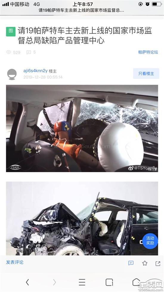 上汽大众帕萨特碰撞测试中方向盘和气囊偏移2020-01-02车型:2019款 330TSI 豪华版 国VI