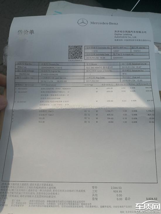 投诉编号:【442325】 投诉时间:2020-01-10 11:42 投诉品牌:北京奔驰 投诉车系:奔驰GLC 投诉车型:2017款 260 4MATIC 动感型