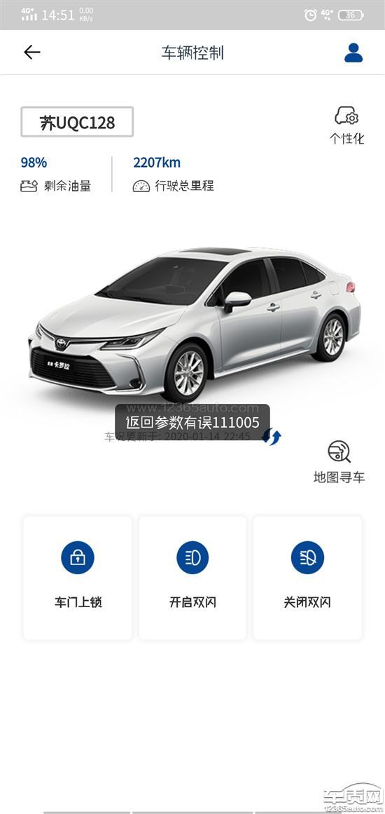 一汽丰田app上远程锁车功能不能使用,刚开始可以使用,一月份以后就不能使用了,每次输入密码以后都跳出返回参数有误111005,另外违章查询车牌号也无法输入,从购车后,趣驾welink就一直无法使用,到4s店去请教过,也没有弄好,说留微信,弄清楚后会联系我,到现在也没有消息。