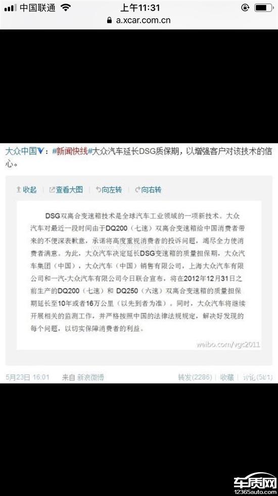 上汽大众厂家回复:经了解,经销商已联系客户解释说明,我司要求经销商继续关注客户车辆使用情况,保证客户放心用车。