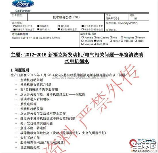14年3月份提车,12款新福克斯自动舒适版,从15年开始,偶尔发现喷水电机不工作现象(多数情况正常),发现喷水电机漏水,导致电机插头处充满液体,电机无法工作,去4S店反馈,仅做除水接头处理。20年2月6日出现电瓶亏电严重,全车无电;更换新电瓶异常消失,但启动发动机后转速瞬间掉电直500转(近似熄火),重复两次后转速正常。路上行驶时起步加油发动机无动力、转速不提升(差点发生追尾事故)。检查发现副驾驶位置BCM模块插板处也有进水腐蚀的痕迹。检查师傅解释,水从喷水电机密封圈处渗漏到线材接口处,进而沿着线束进入到BCM模块,导致该模块也出现腐蚀。因BCM模块出现问题。与福特400电话沟通,该故障不属于质保延保范围内。经网络搜索,发现此款车型部分车辆存在相同的隐患,车主用户反馈的信息类似,此问题应数据厂家设计缺陷。(因此喷水电机漏水问题比较隐蔽,用户对此一般不会太在意,所以后期发现比较困难,如果过了质保期,4S店或者厂家往往拒绝索赔。)强烈建议厂家对存在隐患的车辆进行召回处理并维修因此问题造成的其他损失!