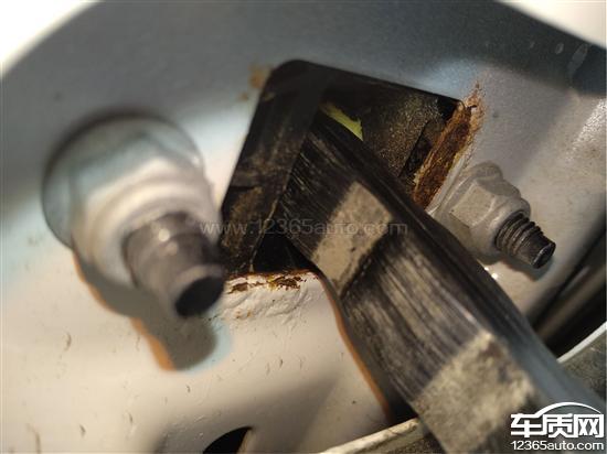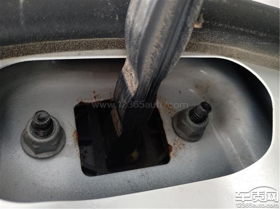 检查发现后门拉带里面发生生锈,并且靠近螺丝部位,设计缺陷导致车窗雨水流经该位置腐蚀,细节也有可能车身导致安全保障问题,提醒福特系列车主注意该事项,也提醒福特厂家改进。