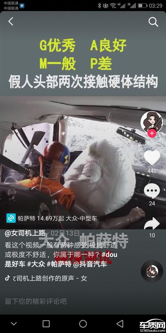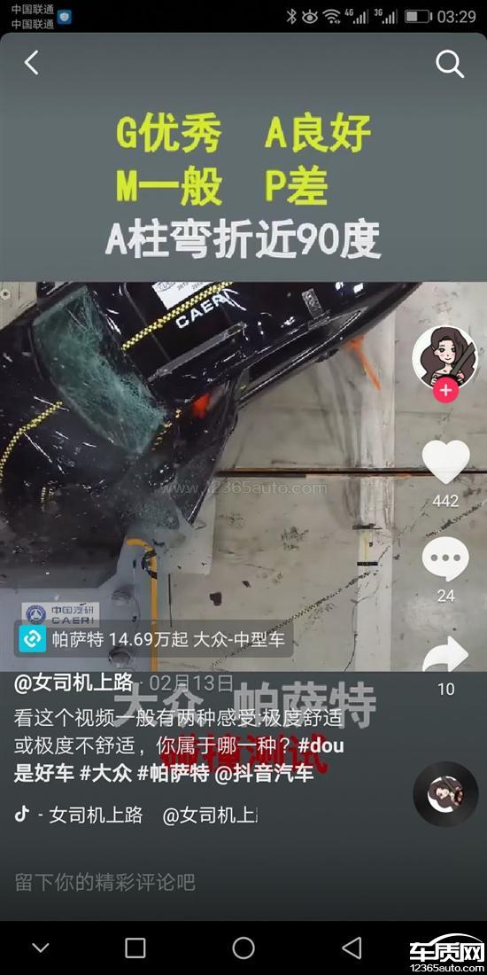 上汽大众帕萨特中保研测试A柱断裂 油门共振2020-03-13车型:2019款 330TSI 精英版 国VI