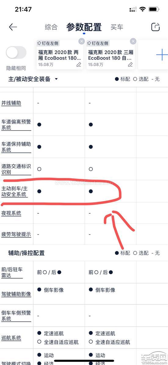 2020新款福克斯STLINE的标配主动刹车系统问题如下:在所有资料以及店面宣传单都有提及标配的主动刹车,包括车辆的配置单都有,还有车质网里面的配置中均有明确表明其中带有主动刹车系统,还有咨询过4S经销商也是告知我有主动刹车系统,可是昨天车辆在行驶过程中无法触碰紧急主动刹车系统,导致车辆发生碰撞,为何配置里有的,但是却用不了呢,我想厂家能给出一个比较明确的答复!