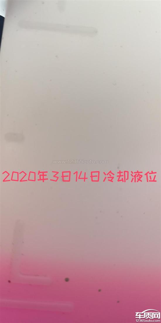 冷却液使用中明显进行性减少,从2019年6月购车至今,观察到冷却液进行性明显减少,有照片为证,2019年6月提车时冷却液位于中线处,现已接近下线了。