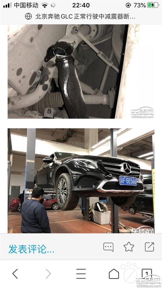 北京奔驰GLC正常行驶时左前减震器断裂,减震器突然断裂,方向盘失灵,幸好前后无来车,否则后果不堪设想。