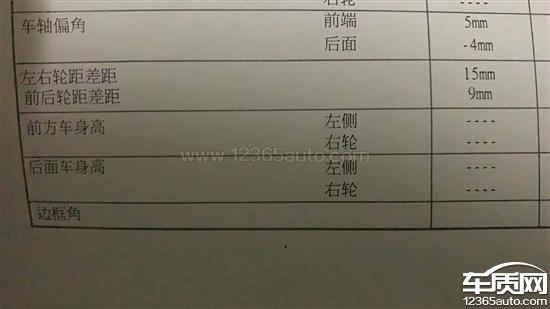 新车车轴偏角前端5mm后负4mm左右轮距差15mm前后轮距差9mm.购车4s店不承认车辆存在的问题!已经投诉过厂家,厂家和4s店沟通后到店检查4s店还是不承认问题,希望相关技术认定部门给予帮助,