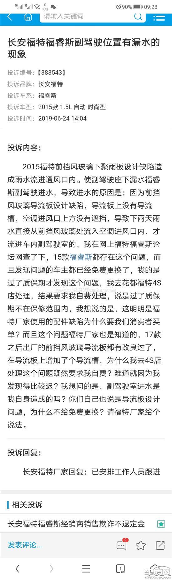 副驾驶漏水,前挡风玻璃起雾,副驶漏水车导致座架生锈,2019年10月12月,4S店维修过两次,效果不好。现在副驾驶又漏水,因过了保修期,询问的售后说要自费检查维修。福特福睿斯2015款,在网上有很多车主都反应因设计问题副驾驶漏水,希望厂家能够免费更换配件,彻底解决副驾驶漏水问题,谢谢!
