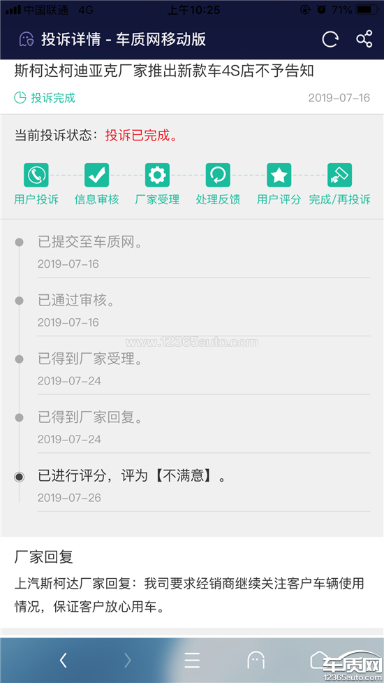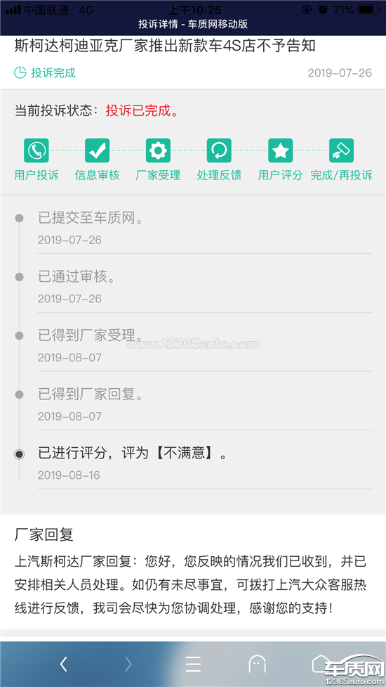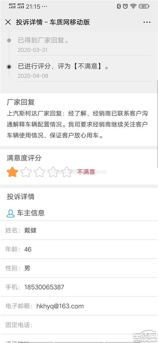 上汽斯柯达厂家回复:经了解,客户车辆配置正常,经销商已联系客户沟通解释,我司要求经销商继续关注客户车辆使用情况,保证客户放心用车。