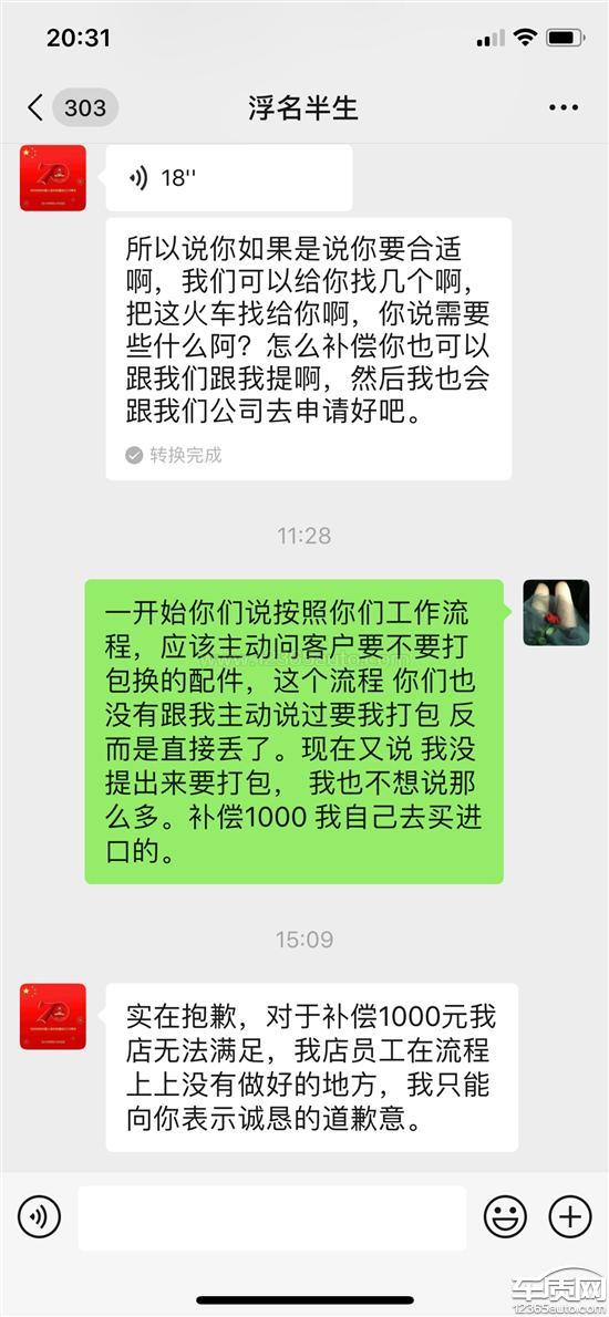 发票价格不对称,按照4s店工作流程,我也有致电给4s客服,客户更换配件后应主动咨询客服要不要打包换的原配件,4s店没有问我把我的原配件直接丢了,无法按照我的要求把原装配件寄回给我,现在无所事事爱理不理。