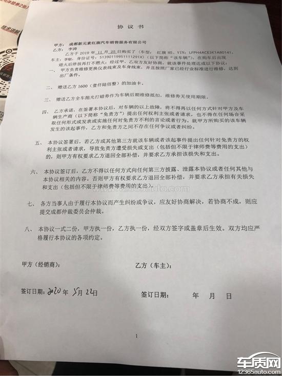 投诉编号:【477378】 投诉时间:2020-05-26 18:45 投诉品牌:一汽红旗 投诉车系:红旗H5 投诉车型:2019款 30TD 型动版