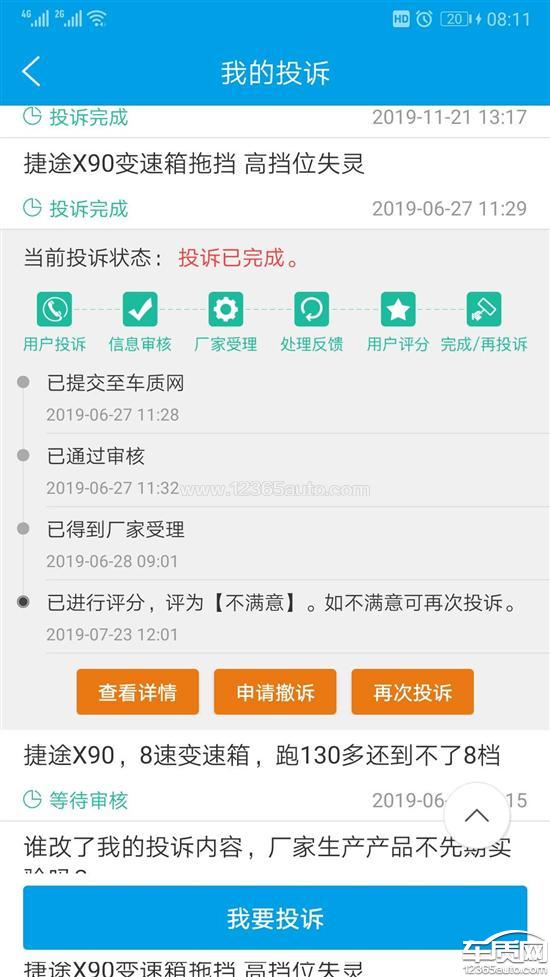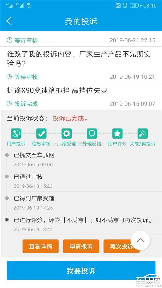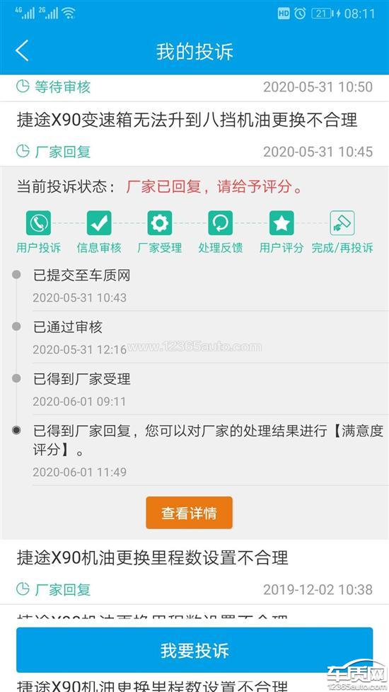 投诉编号:【481421】 投诉时间:2020-06-07 08:19 投诉品牌:奇瑞汽车 投诉车系:捷途X90 投诉车型:2019款 1.5T 自动 尊享型 6座 国V