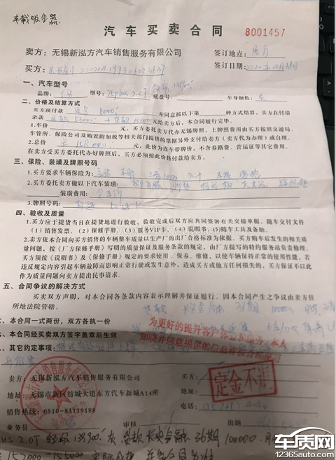 1、第一次买车不懂收取续保押金第二年第三年商业险。2、承诺全国保养变为无锡本地保养。3、价格欺诈承诺比拼车节划算,但是付完订金之后,返现并未给优惠。4、并未告知订金不退订金不退的字样是签完合同后,销售后盖的,签合同时并未发现订金不退的字样。