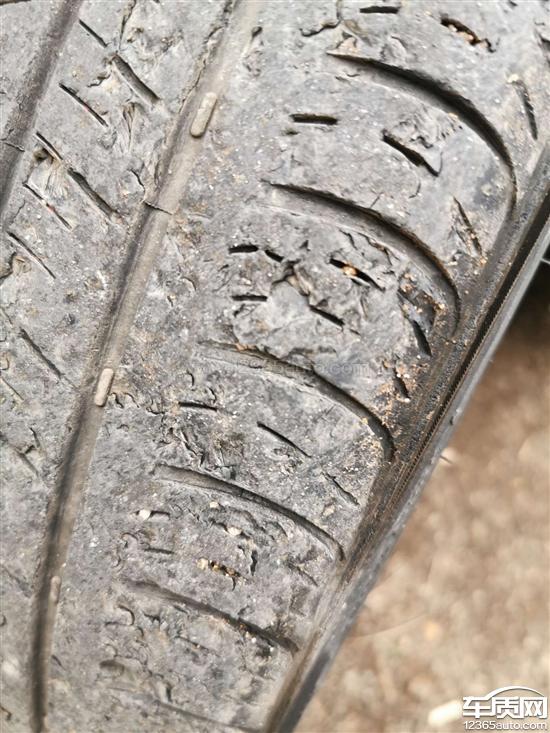 买车一年不到就慢慢出现像狗啃了轮胎似的,掉一小块一小块,起初没怎么注意,但是最近出现车停放时导致漏气。