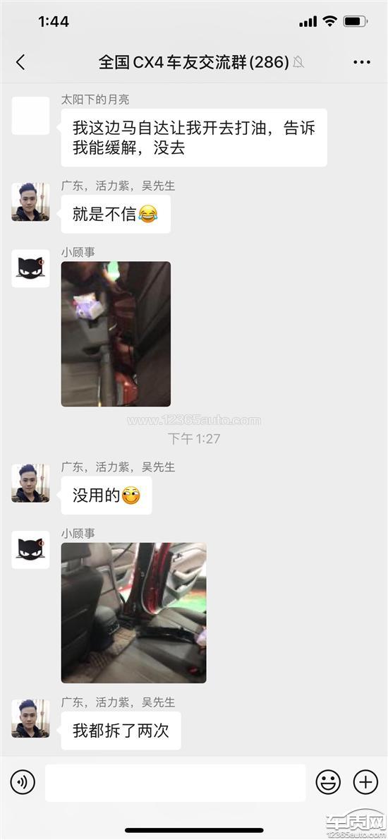 提车就出现异响,开了几天特别严重。销售让找售后,当时售后说等厂家回复。后来实在受不了哒哒哒声音。严重影响驾驶,声音太大。去店里检查路试结果ABC柱出现异响。然后售后让放那几天,拆车检查,打胶什么的。但是异响6群群友说拆车打胶几次都没解决。