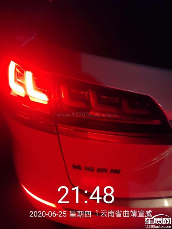 长安欧尚X7后备箱尾灯不亮与宣传不符,后雾灯只有一个,影响安全行驶。