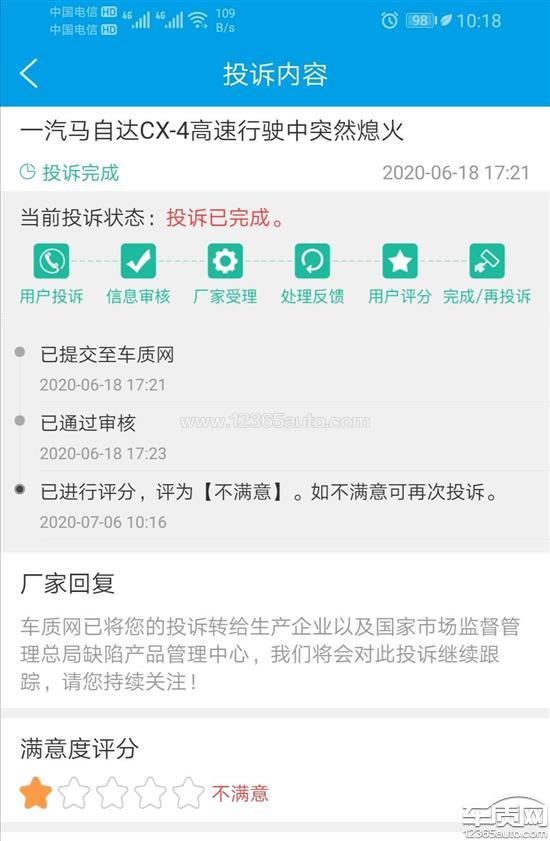 投诉编号:【492128】 投诉时间:2020-07-06 10:21 投诉品牌:长安马自达 投诉车系:马自达CX-4 投诉车型:2020款 2.5L 自动 四驱 蓝天激情版