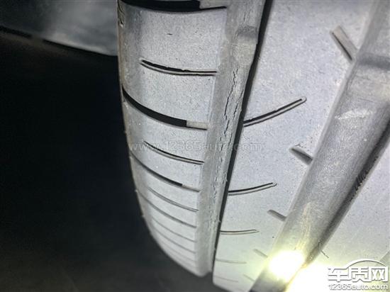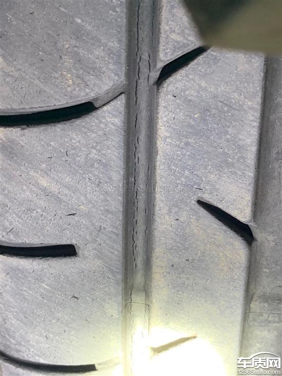 上汽大众途昂邓禄普轮胎排水槽内开裂,正常行驶,无事故,四条轮胎同样的位置,最外侧排水槽内,全都出现裂纹!