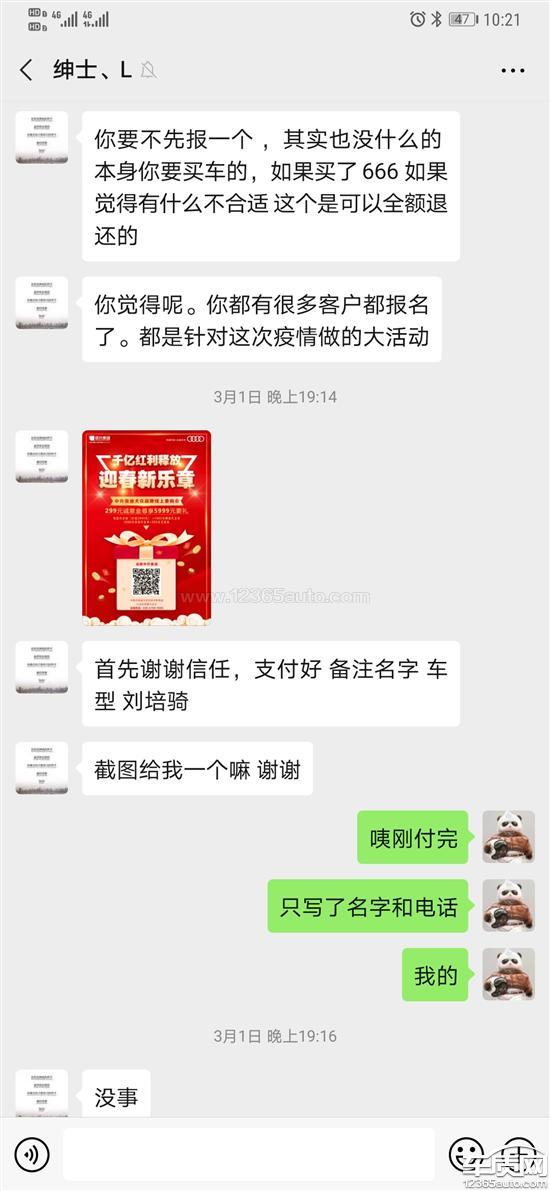 2020年3月1日,在成都4S店,以收取诚意金为由头,收取了299元,并且承诺可以随时退还,但是事情过去了迄今3个半月,在数十次和销售顾问沟通无果,与该4S店沟通也互相推脱,并且在一个月前要求我提供了身份证和银行卡信息(缴纳时是通过支付宝,个人信息暴露,怀疑将其作为不法用途),但是仍然没有退还,对此,对4S店的办事效率提出强烈的愤慨。作为一名奥迪车主,对此表示失望,希望能妥善解决,退还本就应该退还的诚意金,连299元的诚意金推脱了4个月都得不到处理,还敢在这样的4S店买几十万的车?无论如何让我对厂家选择的经销商诚信度,此4S店的销售产生严重的鄙视。