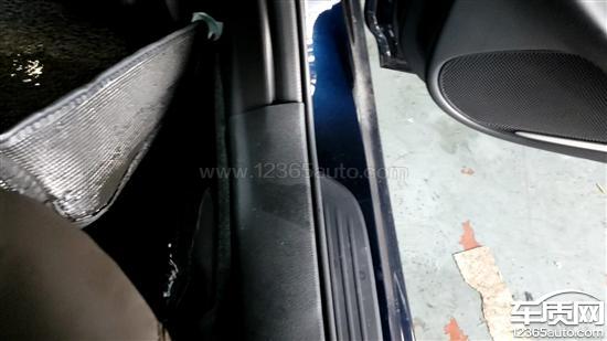 积水严重,底盘积水至脚垫查询车架号口溢出。导致副驾一侧(前后)也积水,内部结构器件积水。