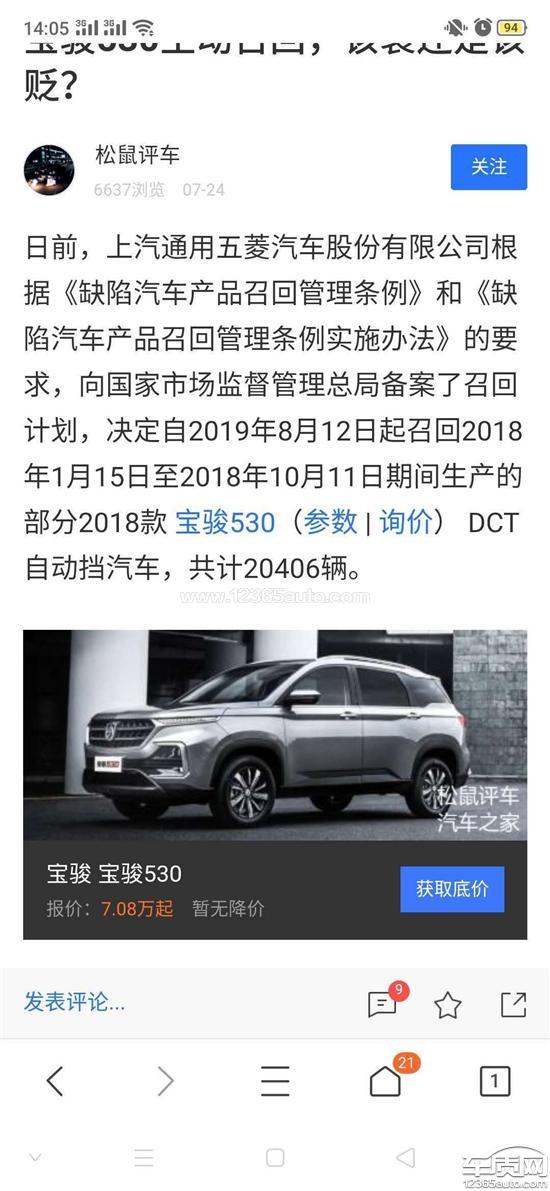 宝骏530变速箱召回时间长 车窗升降器生锈2020-07-16车型:2018款 1.5T DCT 旗舰型 国V