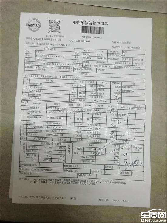 投诉编号:【503909】 投诉时间:2020-08-01 13:17 投诉品牌:东风日产 投诉车系:天籁 投诉车型:2016款 2.0L XL 舒适版 改款