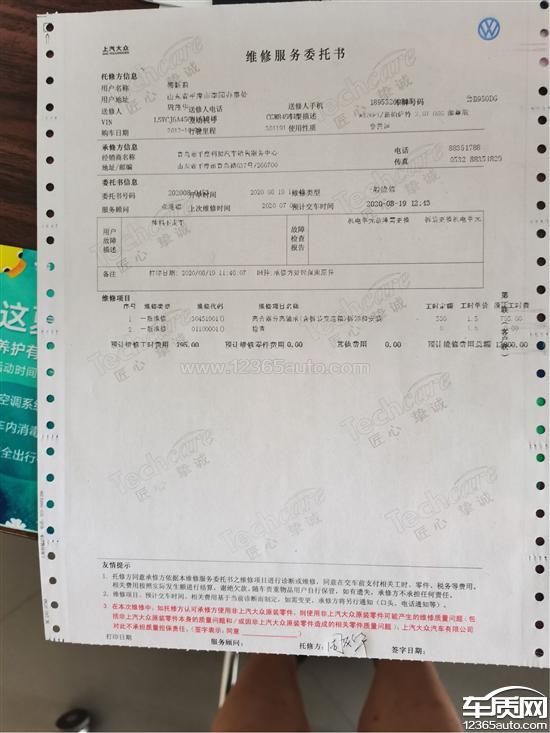 投诉编号:【514192】 投诉时间:2020-08-26 12:26 投诉品牌:上汽大众 投诉车系:帕萨特 投诉车型:2011款 新PASSAT 2.0TSI DSG 御尊版