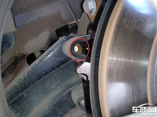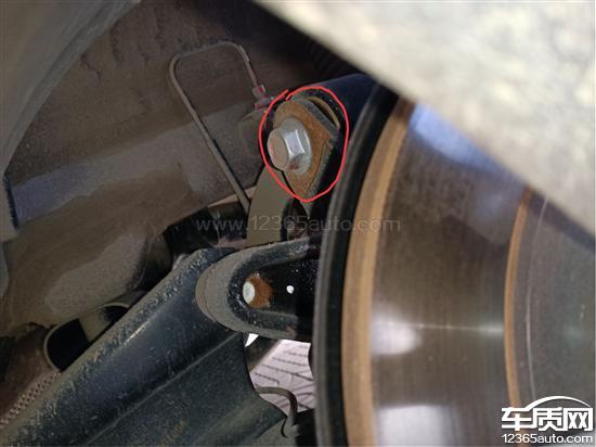 如图,后轮悬挂系统,未填充满螺栓的螺丝孔内生锈,连接件的铣切处生锈。