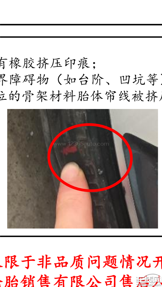右前轮鼓包直径3厘米左右,鼓包后给现代厂家打电话说可以和4s店协商更换,到店后4s出轮胎厂家报告说不是质量问题不更换,再次拨厂家售后电话说只能以报告为准。