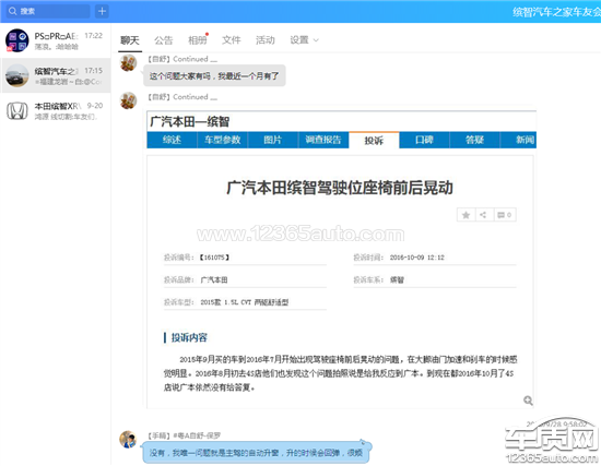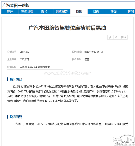 2015年6月买的车到2016年7月开始出现驾驶座椅前后晃动的问题,在大脚油门加速和刹车的时候感觉明显。感觉不是大问题,就没有过多去考虑和处理。今天在qq交流群有发贴出这类问题,和我的一样,所以我也咨询下。希望广汽本田也一视同仁,帮我处理好这个问题。