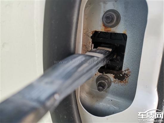 长安福特福睿斯四门的车门限位器都出现生锈现象,后门腐蚀严重,车门有脱落风险。