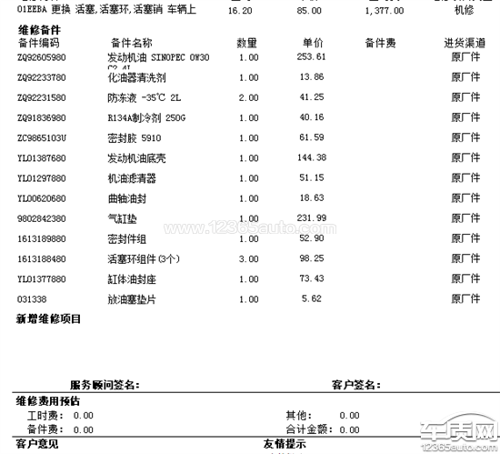 1.2T发动机因皮带掉毛召回后,发动机延保1年,经测试每1000公里消耗机油408g机油。发动机大修时4s店只经过外观检查就出具维修方案只更换活塞环,但经个人及发动机专业技术人员评估,发动机缸体已拉缸并受损,要求更换缸体缸盖等零部件,售后认为更换缸体费用较高,厂家很难审批。另外4s店说厂家只提供2瓶防冻液和1瓶冷却剂,但实际各需要3瓶,剩余还需个人付费。