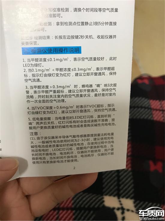 买车超过两年,经常开窗通风,但味道还是重,之前使用一年半的时候用粉末试剂检测甲醛超标,使用2年后实在味道重,使用空气检测仪检测,车内密闭2小时甲醛严重超标以及tvoc严重超标,机子不断报警。与4s店反应,不予理会。