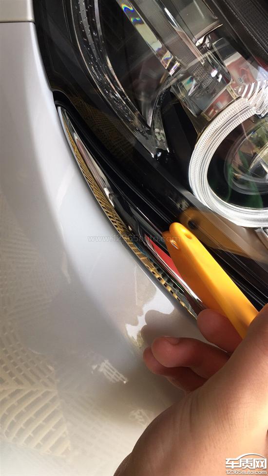 左右车灯与镀铬装饰条缝隙不一致,车头左边缝隙大,小拇指可以塞进去,容易进水,导致车辆泡水或损坏发动机。