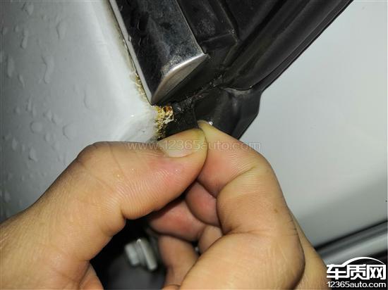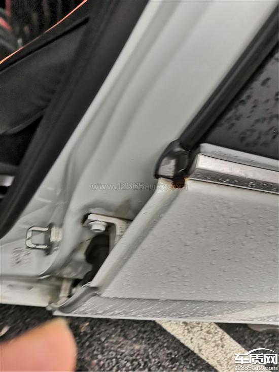 两后车门如图锈蚀严重,具体发现过程,洗车的时候,发现右侧后门角落生锈漆面鼓包,(车辆没有任何的碰擦事故),鼓包漆面破裂后,掉落了一大块漆面,近而发现已经锈掉了一大块,而通过观察发现另一侧车门也已经出现类似生锈鼓包的情况,如果生锈情况再发展下去,可能会出现车门锈穿的情况。由此可以推测:此生锈过程是由内到外的,应该是奇瑞的车门材料或钣金漆面工艺有问题,导致此情况的发生。